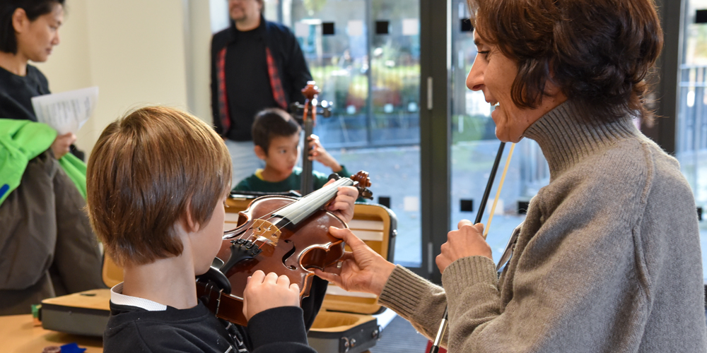 Und wurde an der Bonnstraße - unter Federführung von Dorothee Behr - kurzerhand das Angebot ausgeweitet. Mehr Mitmachunterricht, mehr Schüler:innen und Schüler, die als Guides und Ansprechpartner:innen für die breite Fächerauswahl und Workshops zur Verfügung standen.