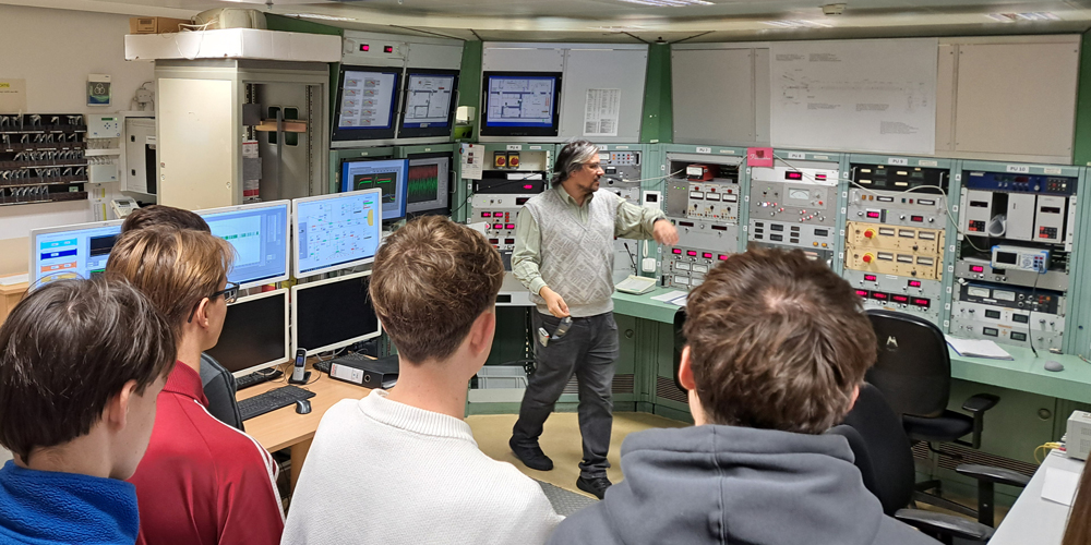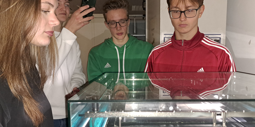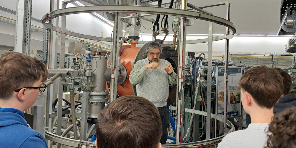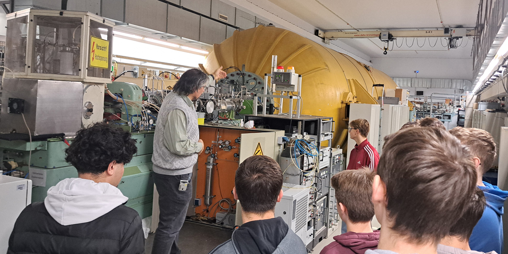 „Im Inneren werden Teilchen aus verschiedenen Proben mit bis zu neun Millionen Volt Spannung beschleunigt. Bei diesen hohen Energien können wir sehr präzise Analysen vornehmen“, erklärt Blazhev den Leistungskurslern.