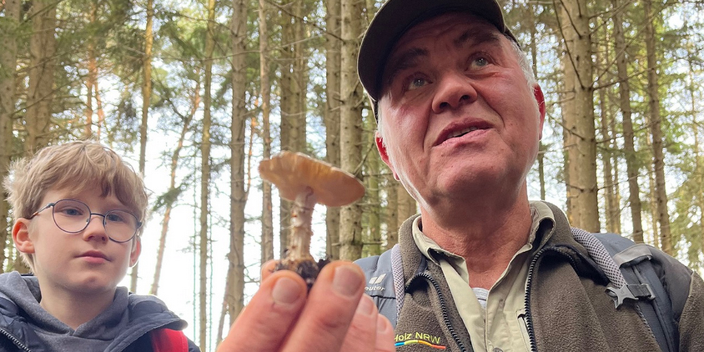 Dabei boten sich beste Bedigungen, denn der Boden war durch die Regenfälle der letzten Tage gut durchfeuchtet und dann kam auch noch die Sonne raus und ließ den herbstlichen Wald in goldenen Farben ebenso leuchten wie zahlreiche Kinderuagen.